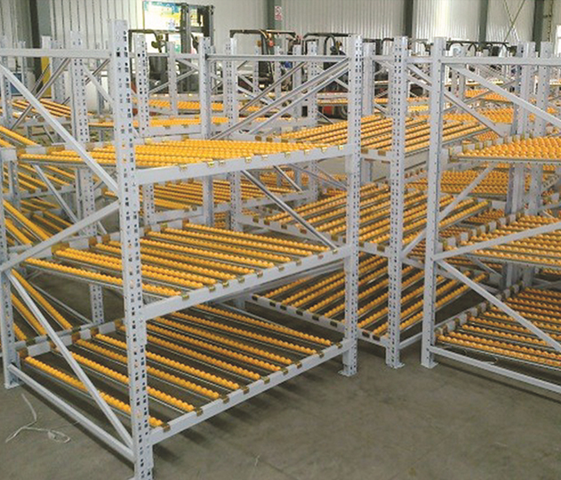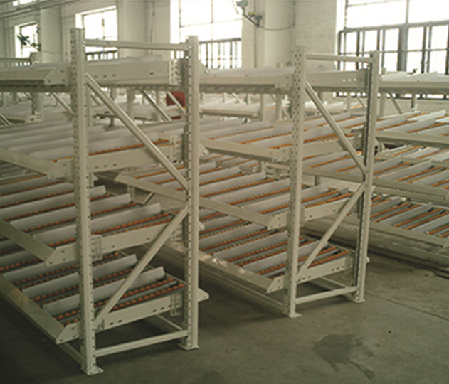 流利式貨架 是(shì)由流利條、滾輪、立柱、橫梁、拉杆、滑道(dΩ♣ào)、輥道(dào)及一(yī)些(xiē)防護設施部件(jiàn)組成,♣≠₩↕通(tōng)過有(yǒu)一(yī)定高(gāo)度差的(de)滾輪把貨物↕φ(wù)從(cóng)高(gāo)端送到(dà₩¶™o)低(dī)端,貨物(wù)借自(zì)身(shēn♥)重力下(xià)滑,可(kě)實現(xiàn♣∏§)“先進先出”作(zuò)業(yè)。